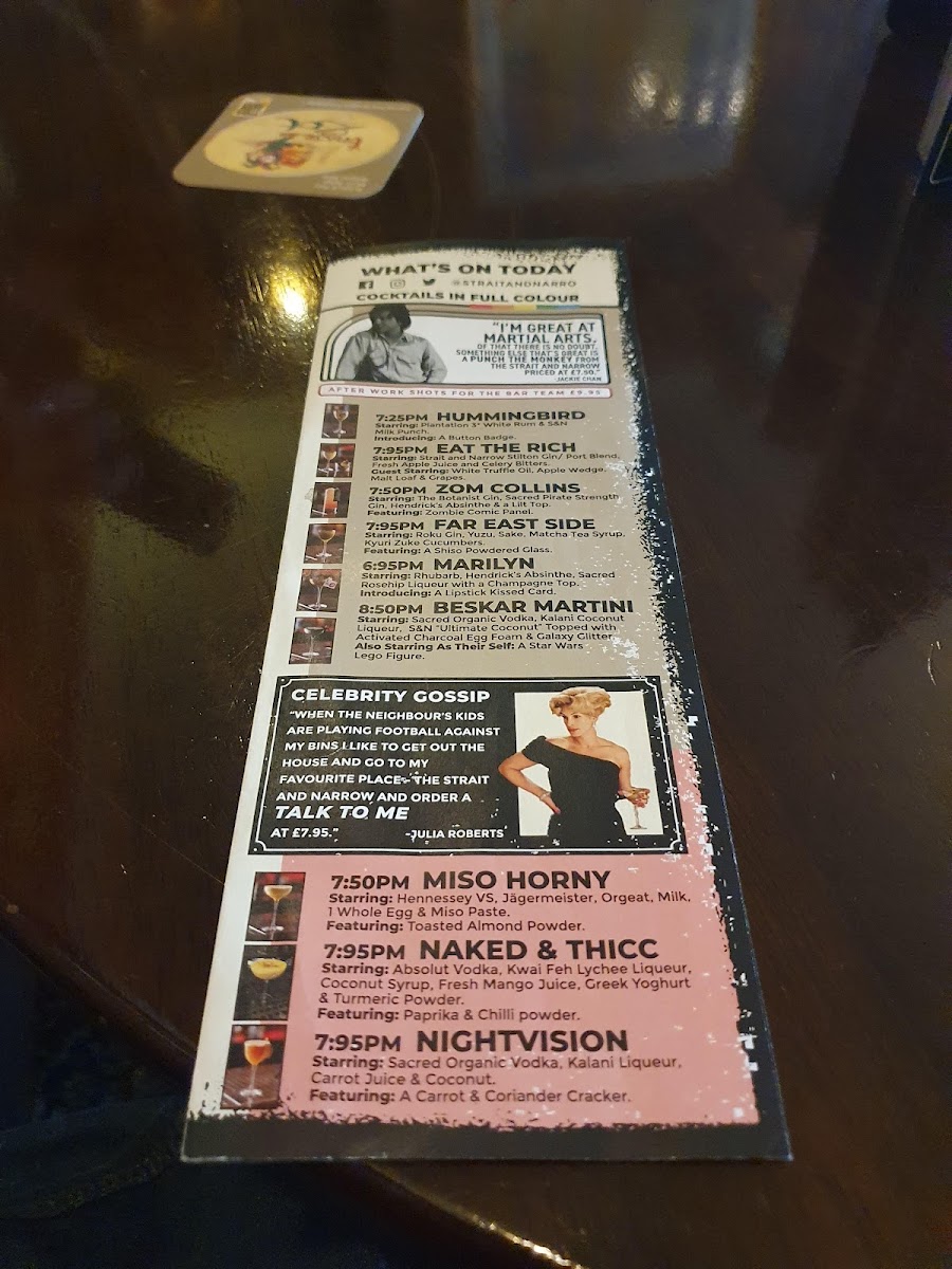 The atmosphere is equally captivating; customers rave about the friendly and engaging staff, ensuring every visit feels like an experience. Whether you're indulging in a creative lowball or enjoying a lively night out, the quirky decor and spacious seating create an inviting ambiance. With a commitment to quality and fun, The Strait and Narrow is more than just a bar; it’s a destination for unforgettable nights and delightful drinks.